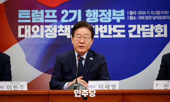 이재명 당대표가 2024.11.10.(일) 국회 본청 당대표회의실에서 열린 트럼프 2기 행정부 대외정책과 한반도 간담회에 참석하여 모두발언을 하고 있다.