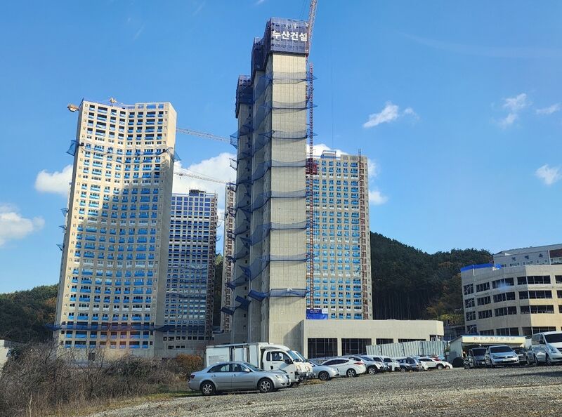 지난 2022. 10월에 착공한 두산건설은 2025. 09월에 준공할 예정이며 지하 3층, 지상 27 ~ 29층, 공동주택 9개동(824세대) 및 부대복리 서설 등이 건설되고 있다.