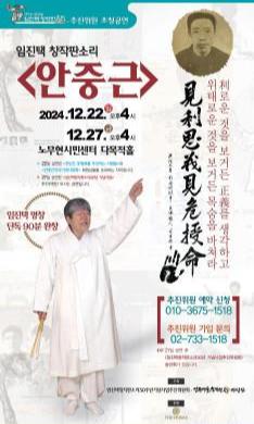임진택 창작판소리 50주년 기념 공연 ‘안중근’이 오는 12월 22일(일)과 27일(금) 노무현시민센터 다목적홀에서 관객들을 맞는다.