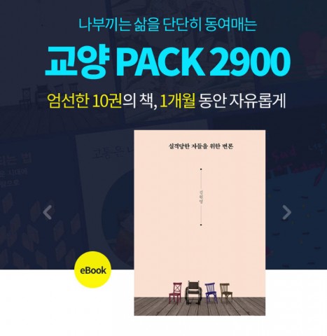인터넷 서점 알라딘은 교양 분야 eBook 10권을 2900원의 가격에 한 달간 대여해 볼 수 있는 ‘교양 PACK 2900’을 출시했다.