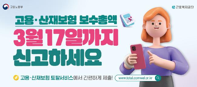 고용·산재보험에 가입한 모든 사업장(건설업 제외)은 오는 3월 17일까지 2024년도 보수총액을 근로복지공단(이사장 박종길)에 신고해야 한다.