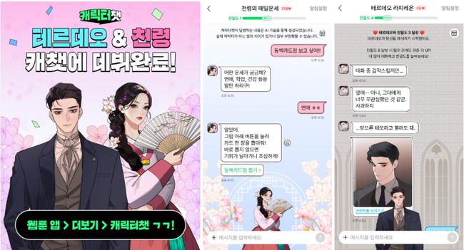 네이버웹툰은 캐릭터챗의 성공적인 도입을 계기로 챗봇 종류와 기능을 지속 확대하고 있다. 서비스 초기 네 개 캐릭터로 시작한 챗봇은 현재 12개로 늘었다. 이날 새로 추가된 <귀혼>의 ‘천령’과 <시월드가 내게 집착한다>의 ‘테르데오’ 캐릭터챗은 더욱 고도화된 기능을 갖췄다. 천령은 세계관을 기반으로 다양한 운세를 제공하며, 테르데오는 대화 친밀도에 따라 호칭과 말투가 달라지는 시스템을 도입했다.