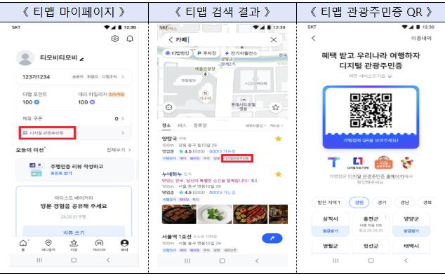 ‘디지털 관광주민증’, 7월 29일부터 티맵에서도 사용 가능 - 대한민국 구석구석 앱 외 티맵 등 민간 앱으로 서비스 확대 - 맛집·카페 검색 시 할인 정보 확인… QR코드로 현장 혜택까지 - 국민 접근성↑ 지역경제 활성화↑ 공공서비스 디지털 전환 본격화