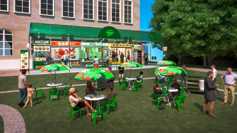 CJ제일제당은 약 230㎡ 규모의 야외정원에 한국식 시장을 모티프로 부스를 설치하고비비고 김치와 떡볶이를 김치만두∙치킨만두∙소불고기만두∙불고기주먹밥∙핫도그와 각각 곁들인 콤보 메뉴 5종을 방문객들에게 판매할 예정이다